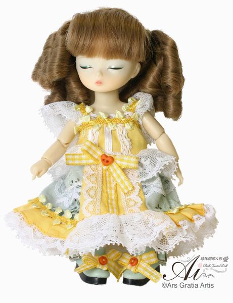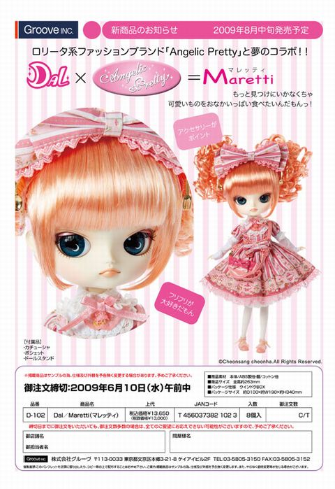 Angelic Prettyコラボ ドレスとお揃いの大きなリボンがチャームポイント ■ダル / Maretti (マレッティ) <D-102 /456037382 102 3 / 13,650円 税込> ワンポイント・・・・アンジェリックプリティのドレスの中で1,2を争う人気モデルをダルが可愛く着こなしています。リボンに付いているフォークとスプーンもかわいい 商品サイズ:全長約263mm パッケージサイズ:約100×190×340mm 付属品:カチューシャ、ポシェット、ドールスタンド パッケージ仕様:ウィンドウBOX